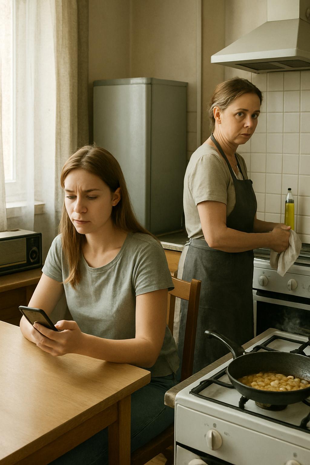 Ivana Radosavljević je sedela za kuhinjskim stolom i bezvoljno listala sadržaje na telefonu. Na ringli je tiho pucketao tiganj u kojem su se pržili ćevapi, a miris proprženog luka uvukao se u svaki ugao stana. Njena majka, Tamara Vukelić, stajala je pored sudopere i spirala sudove, okrenuta leđima ćerki, kao da namerno izbegava pogled. U stanu je vladala gotovo potpuna tišina, koju je remetilo jedino staro radio-aparato na prozorskoj dasci, monotonim glasom najavljujući vremensku prognozu.