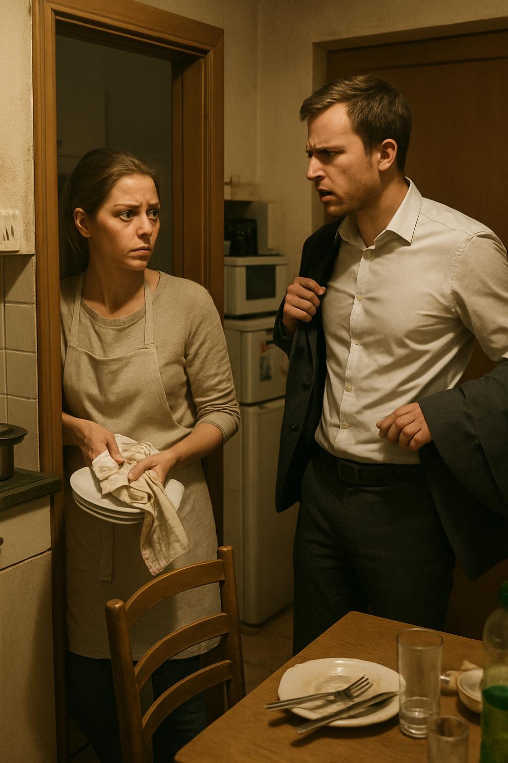 Dok je postavljala tanjire i pribor, osećala je njegov pogled na sebi, težak i procenjujući.