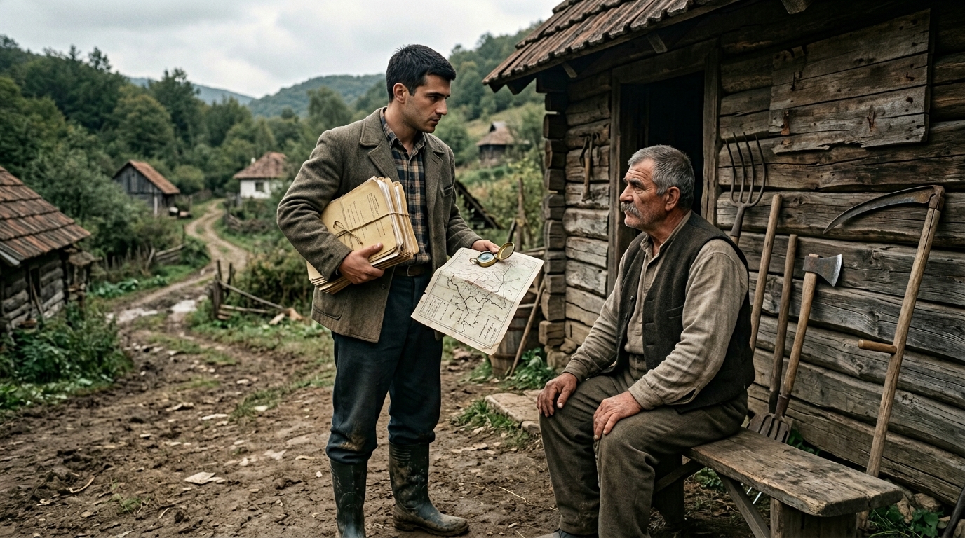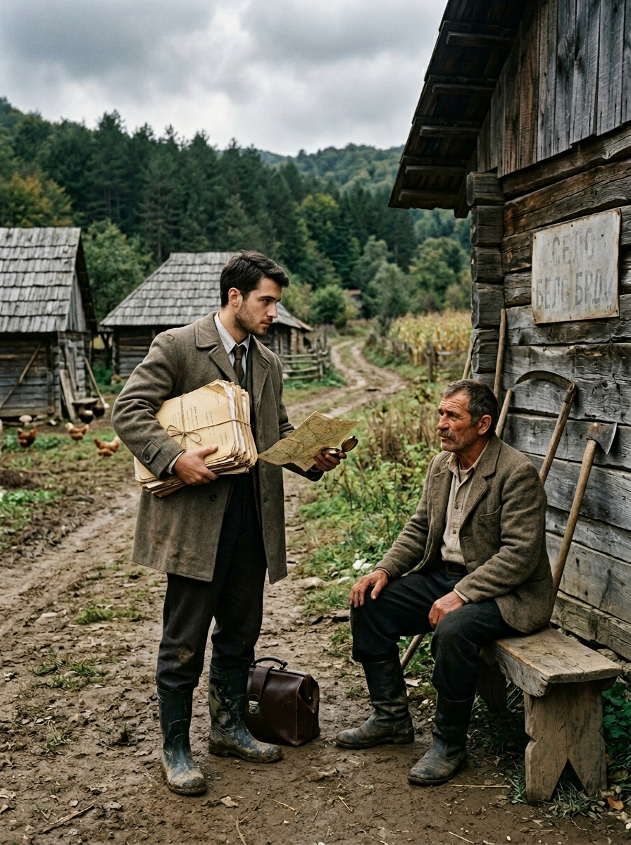 Ispostavilo se da su u pitanju zdravstveni kartoni meštana jednog sela koje nije postojalo ni na savremenim mapama. Uz dokumentaciju dobio je i kompas, gumene čizme i izbledelu kartu iz sredine prošlog veka — poslednji put kada je to mesto bilo ucrtano. Lekar tamo nije kročio pune dve godine. Po nalogu Ministarstva zdravlja, ove godine je trebalo prikupiti detaljnu anamnezu svih stanovnika tog kraja i sastaviti izveštaj sa jasnim zaključkom: ima li potrebe za otvaranjem ambulante ili ne.