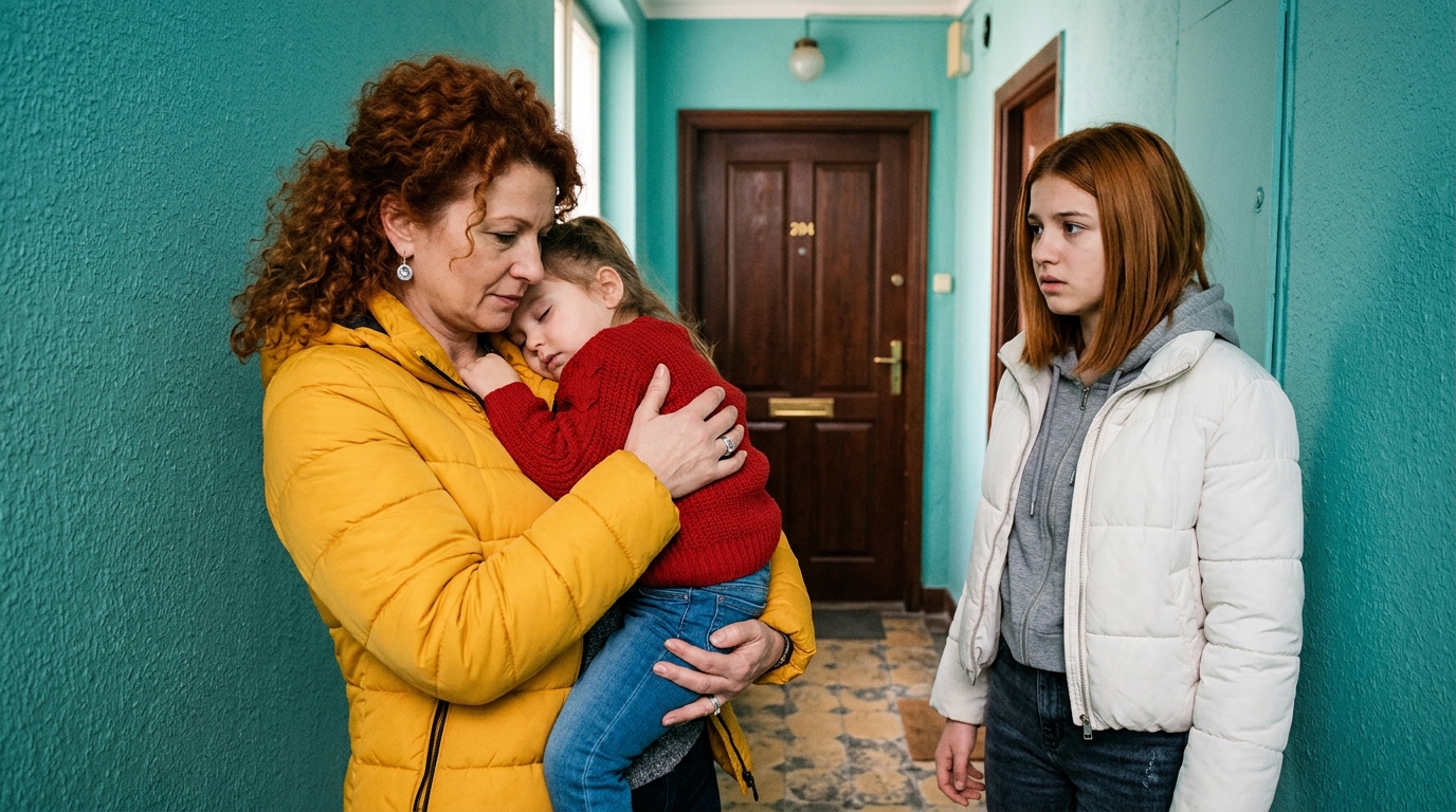 Ema je, iscrpljena hladnoćom i uznemirenošću, utonula u san nekoliko minuta pre nego što su stigle. Jelena je pažljivo parkirala, ugasila motor i na trenutak ostala nepomična, skupljajući snagu. Zatim je tiho iznela uspavanu ćerku iz auta, pazeći da je ne probudi, i krenula ka ulazu, dok je Sara išla uz nju, pridržavajući ćebe da ne sklizne, spremne da pokucaju na vrata i potraže odgovor koji ih je čekao iza njih.