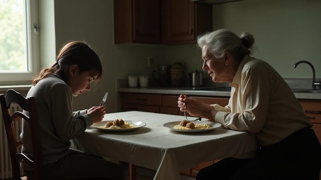 – Šta si se ukočila tako? Kao da nikad nisi dobila obrok – odbrusila je oštro, glasom koji je presekao prostoriju poput biča. – Jedi to što ti je stavljeno i ne zanovetaj.