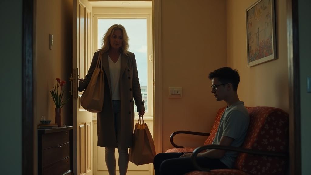 Pokazala joj je put, a zatim se vratila u kuhinju da raspakuje namirnice. Teodor je tiho sedeo na ivici stolice, vidno postiđen.