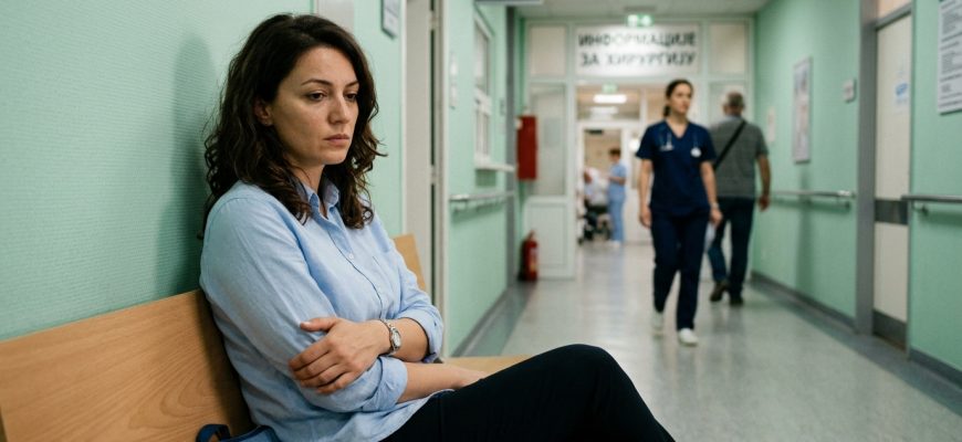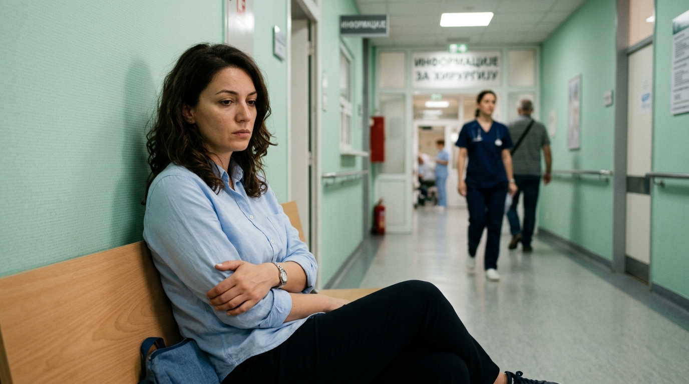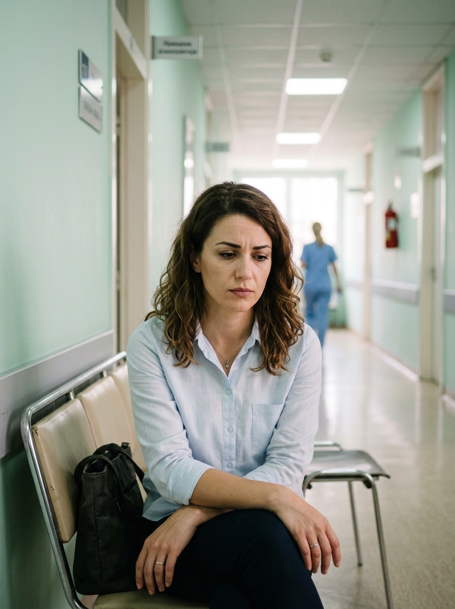 Hodnik je bio gotovo bešuman. Negde daleko, iz drugog krila, čuo se plač deteta. Bolničarka u svetloplavoj uniformi gurala je kolica; točkovi su škrgutali po linoleumu.