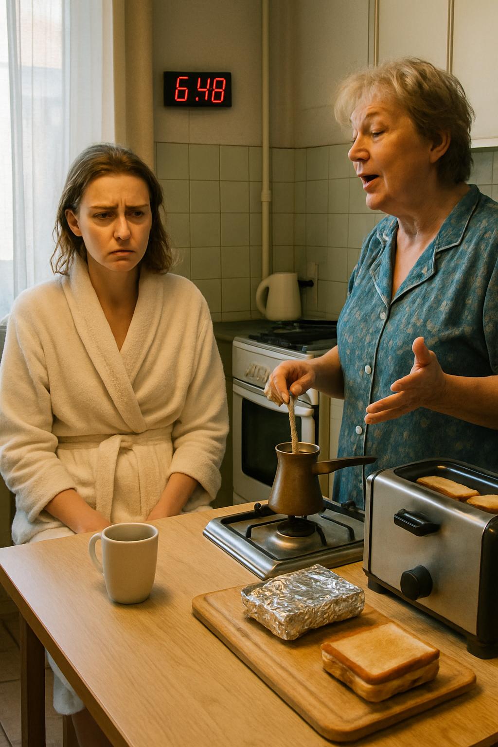 Ali, nažalost, nije bila šuba. Bila je to Jelena. Sa svojom ritualnom jutarnjom rutinom: kafa iz džezve, sendviči na tosteru (bez pitanja da li sme da ga koristi) i, najvažnije — folija. Iz nekog razloga je u nju umotavala SVE. Čak i meko kuvana jaja.