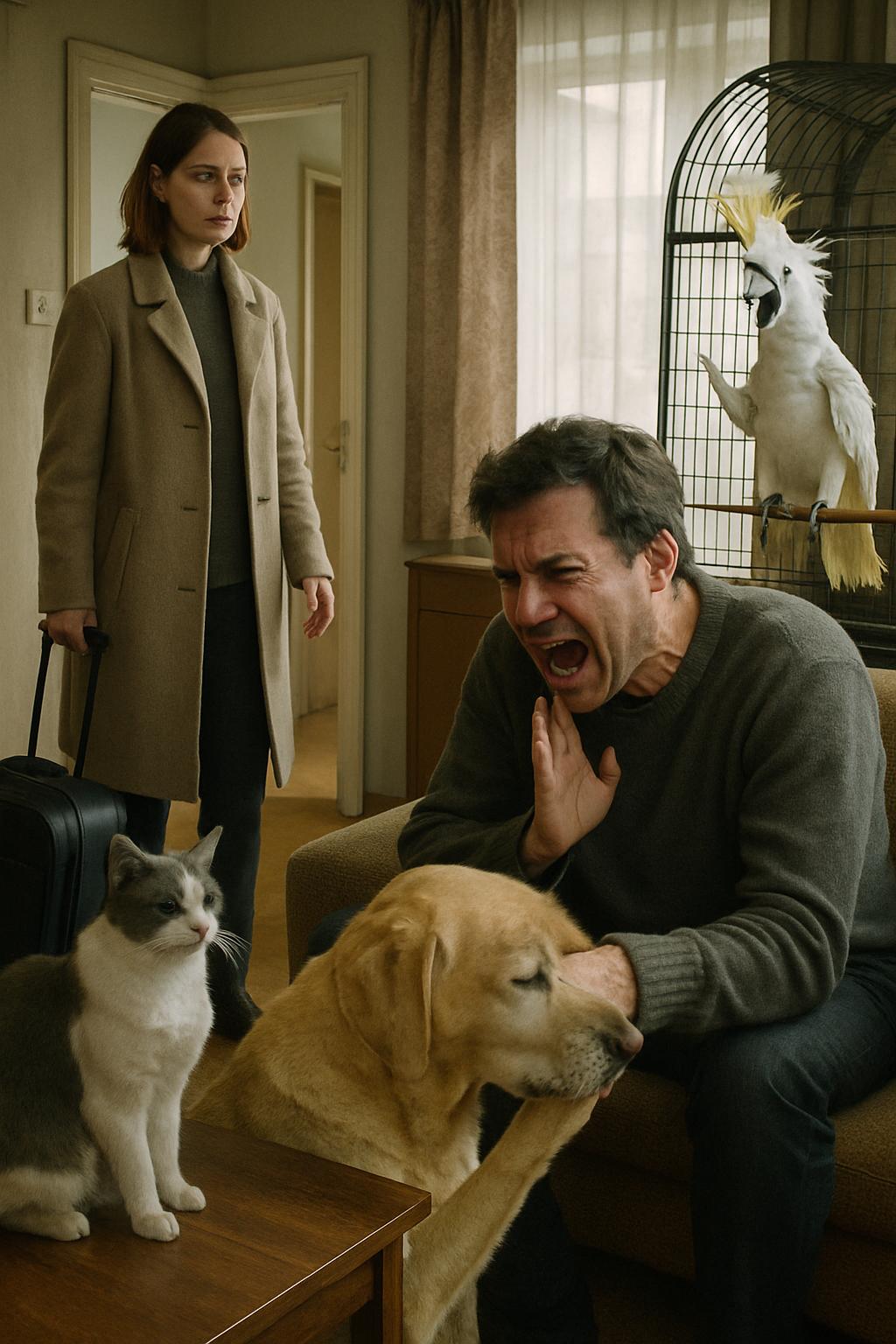 Odmah mu je pritrčao stari francuski buldog Branislav i počeo da mu liže ruke, pokušavajući da ga uteši. A mačak Jovan ostao je da sedi na stolu potpuno ravnodušan. Čak se obradovao odlasku gazdarice — često ga je terala bez razloga.
