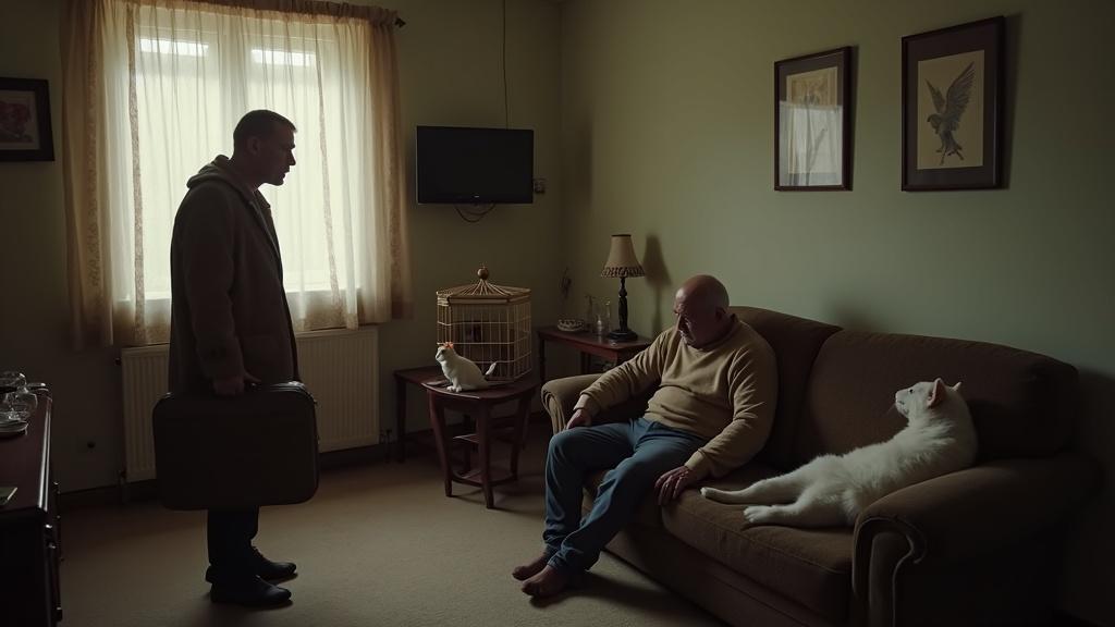 Odmah mu je pritrčao stari francuski buldog Branislav i počeo da mu liže ruke, pokušavajući da ga uteši. A mačak Jovan ostao je da sedi na stolu potpuno ravnodušan. Čak se obradovao odlasku gazdarice — često ga je terala bez razloga.