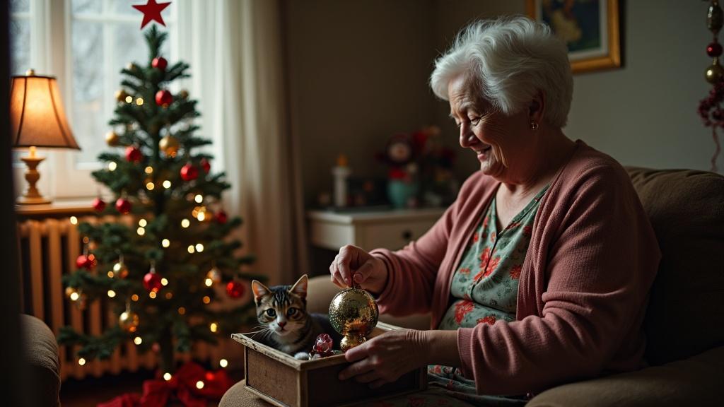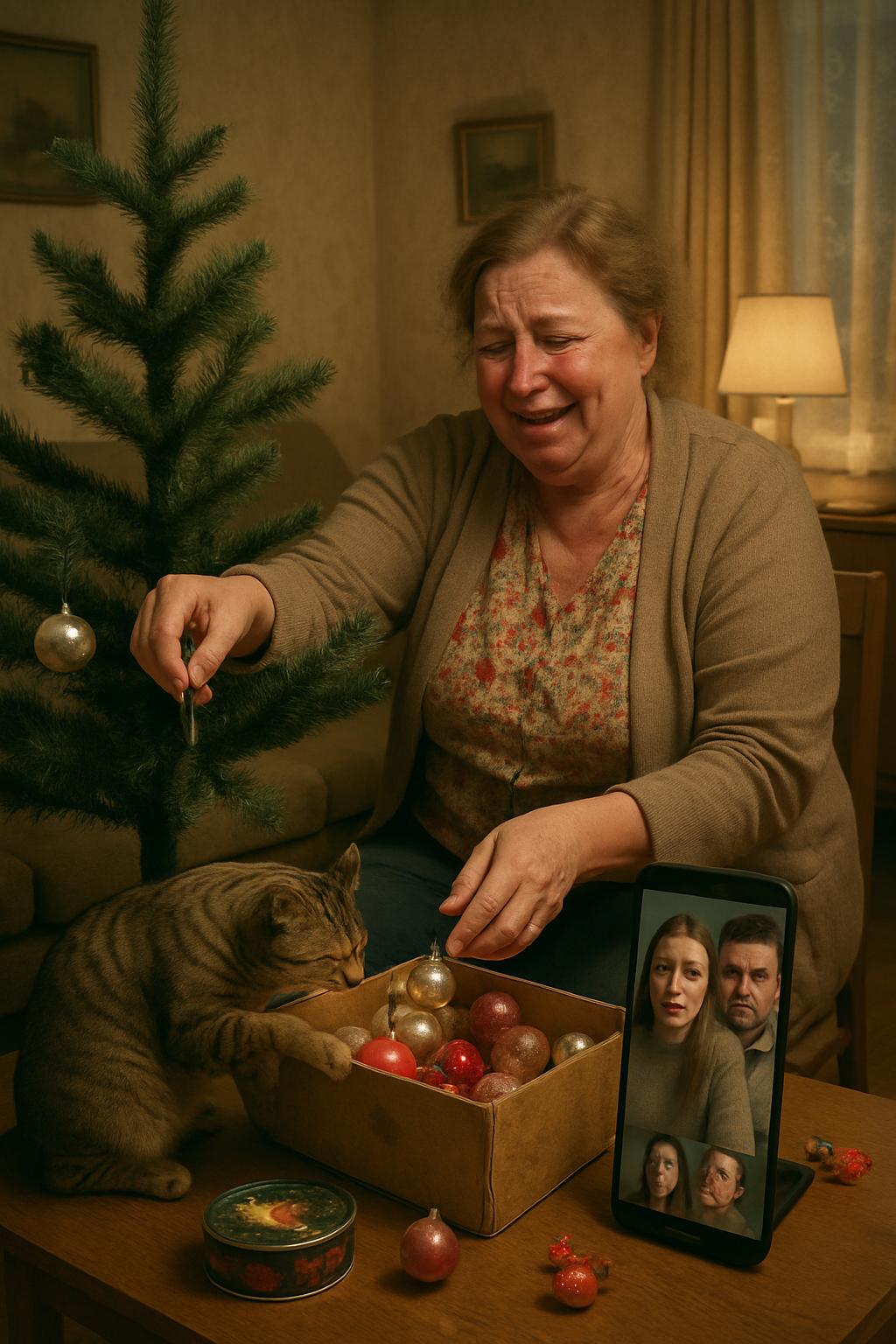 Biljana je sastavila staru veštačku jelku, ukrasila je svetlucavom girlandom i izvukla kutiju sa ukrasima.