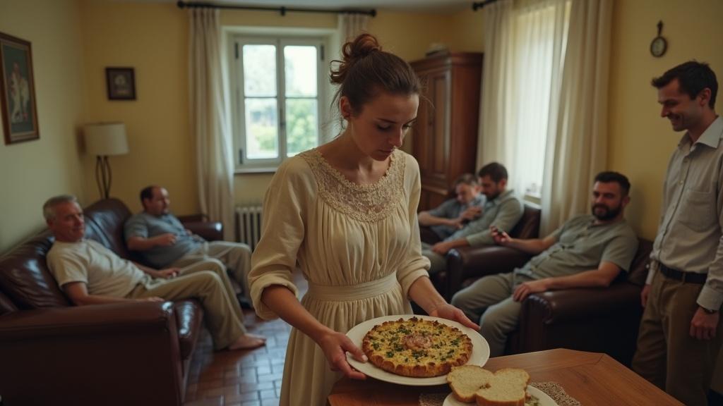 U kuhinji je bilo sparno; rerna je radila punom snagom jer su se unutra dovršavale pite sa kupusom. Mehanički je sekla hleb, osećajući poznato zatezanje u donjem delu leđa. Setila se kako je Viktor prethodne večeri, zureći u televizor, usput dobacio: „Sutra dolaze momci, malo ćemo da posedimo. Spremi nešto kako treba, nemoj da se obrukamo.“ I ona je, bez reči, krenula u nabavku, vukla teške kese da ne plaća dostavu, pa potom do duboko u noć marinirala meso.